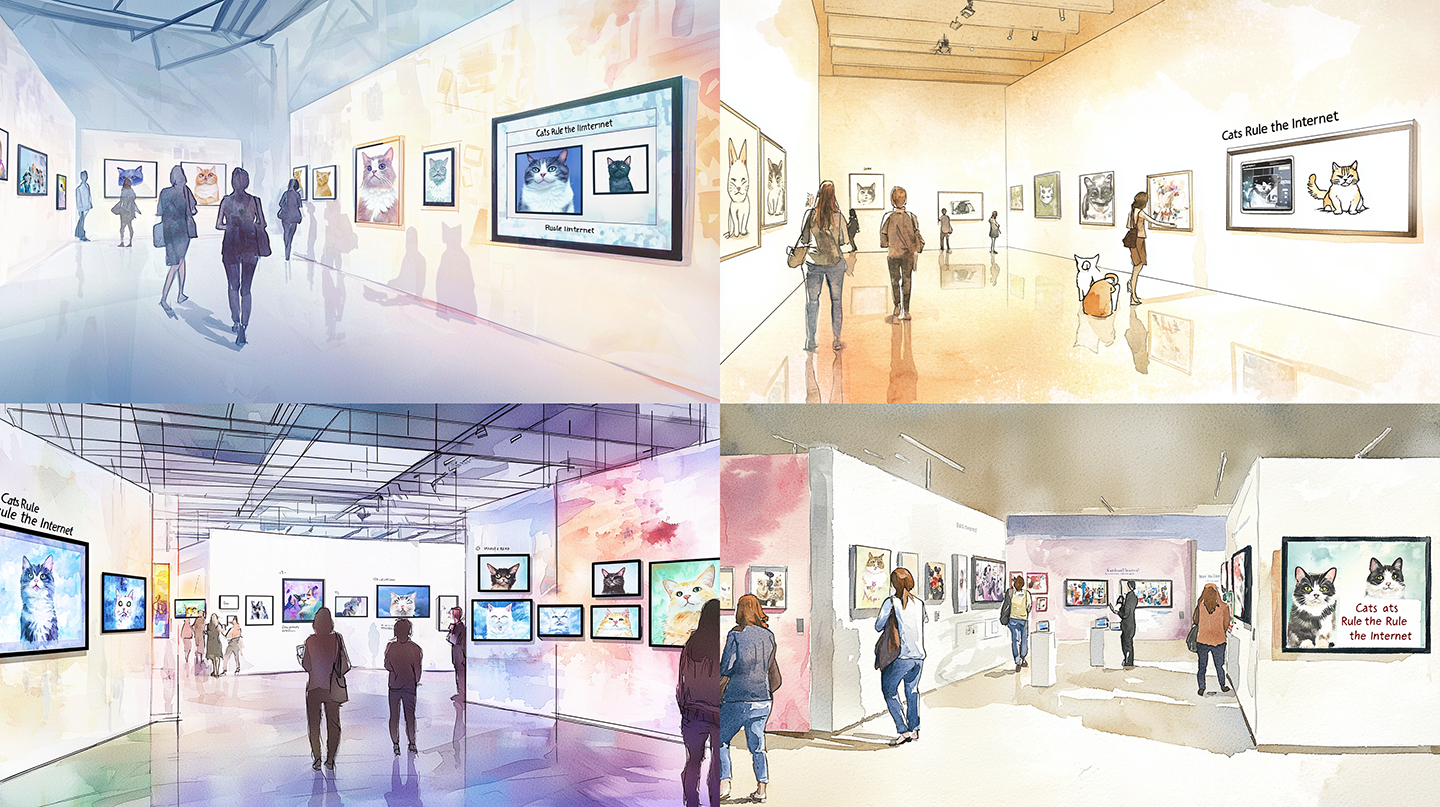 This exhibit explores the global rise of digital cat media, from viral memes like Nyan Cat and Grumpy Cat, to early internet hubs like LOLcats and Reddit, to today’s catfluencers and user-generated content.